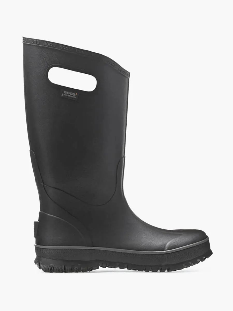 Like its name implies, the Bogs Rainboot is a men's rubber boot that is 100% waterproof. This men's black boot is has an anti-slip outsole. The men's waterproof boot is designed as a men's slip on and is lined with Bogs Max-Wick to keep your feet dry.