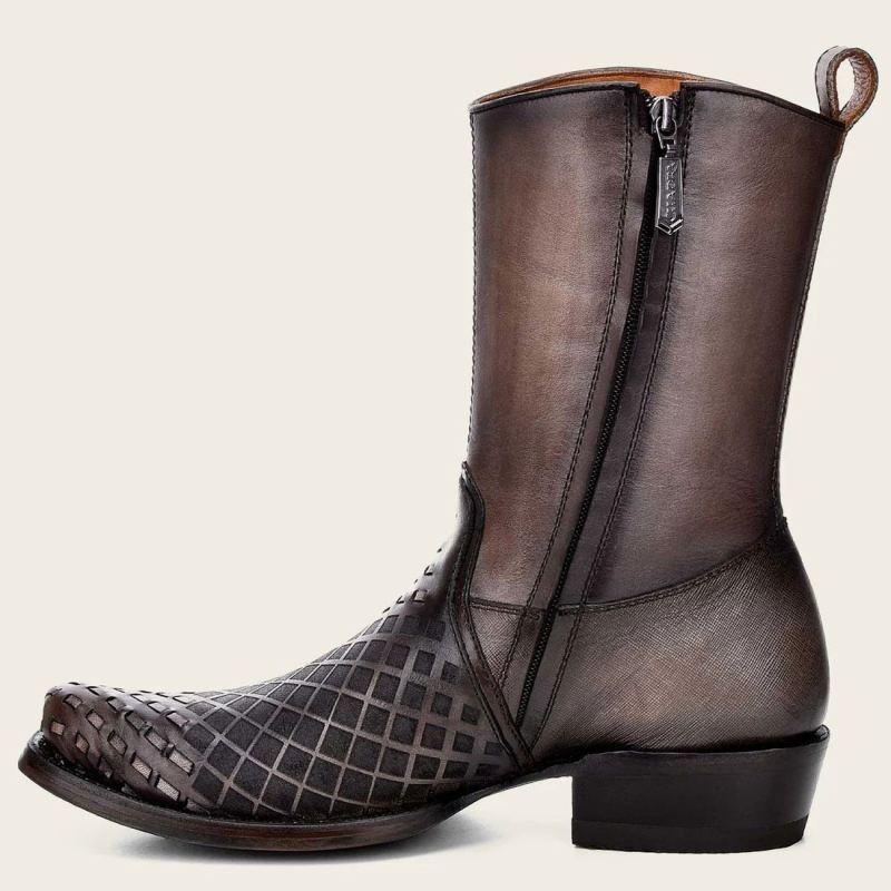 - Cuadra Men's Engraved Grey Exotic Leather Boot-Ostrich - Grey | New Arrivals