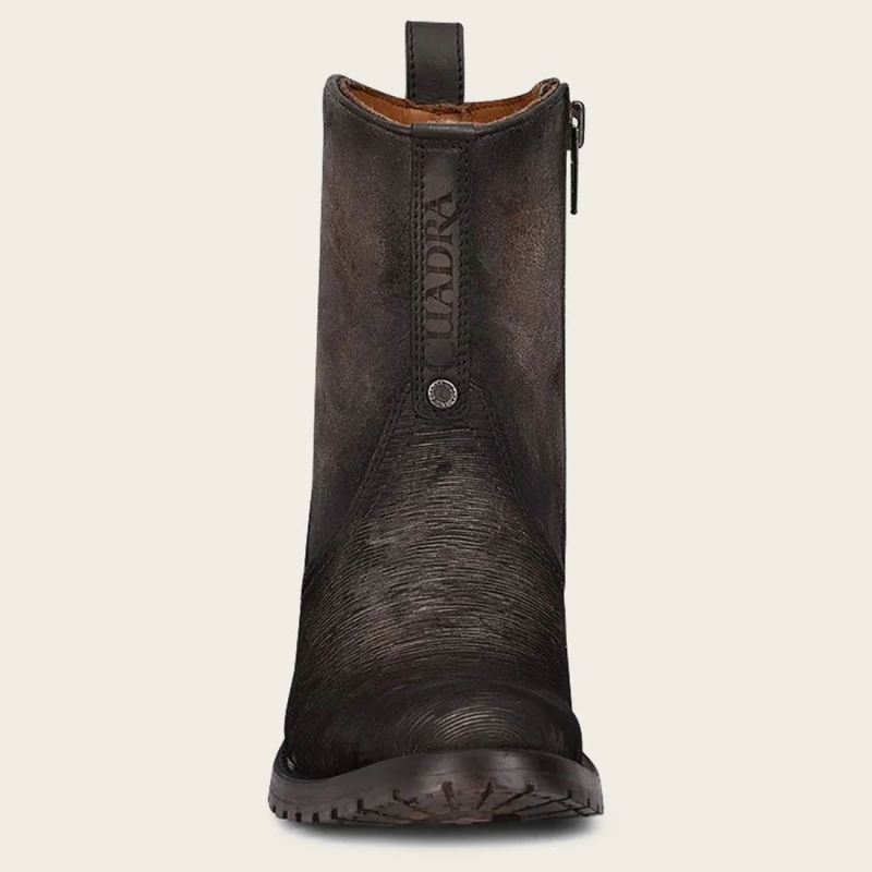 Featuring a leather sole with anti-slip TPU injection, the Cuadra logo engraved and metal rivet on the front. Embellished with contrasting textures, fitted with interior zipper, and premium calf full grain lining.