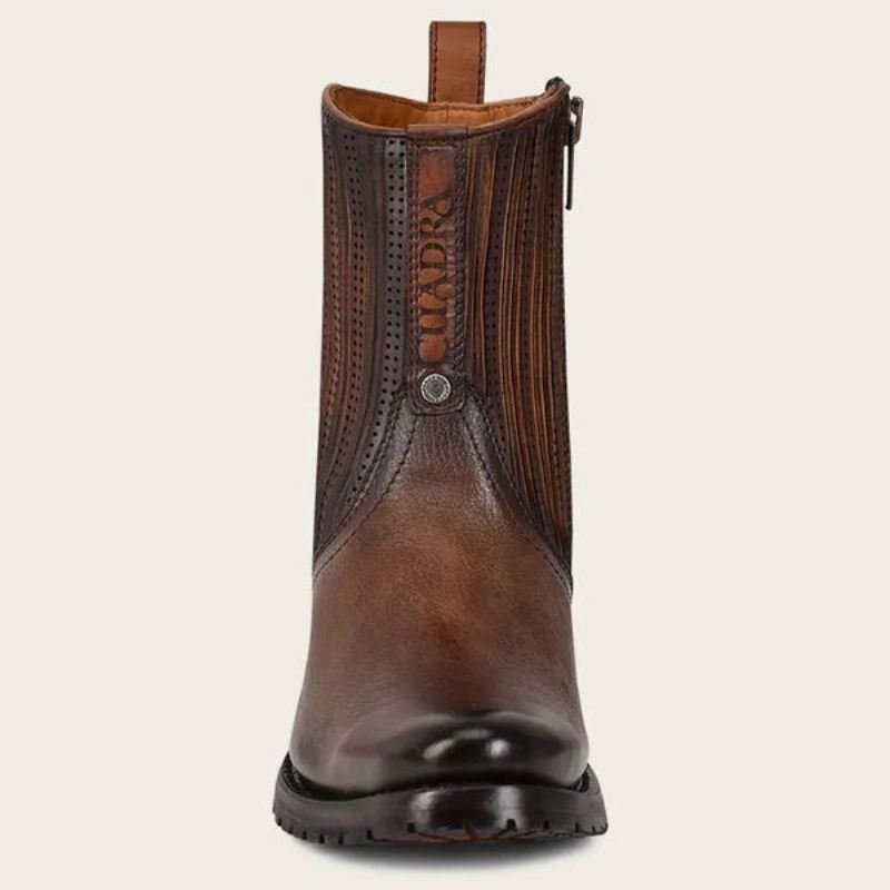 Featuring a leather sole with anti-slip TPU injection, the Cuadra logo engraved and metal rivet on the front. Embellished with contrasting textures, fitted with interior zipper, and premium calf full grain lining.