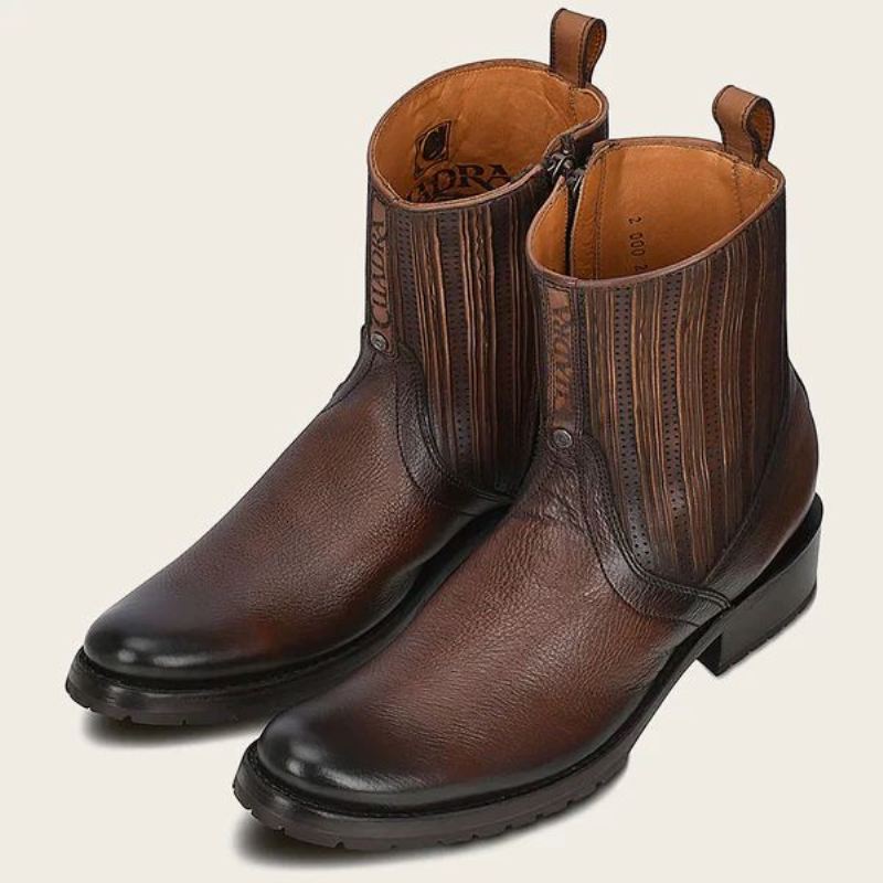 - Cuadra Men's Hand-Painted Dark Brown Leather Casual Bootie | New Arrivals