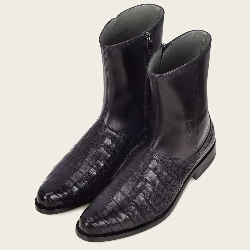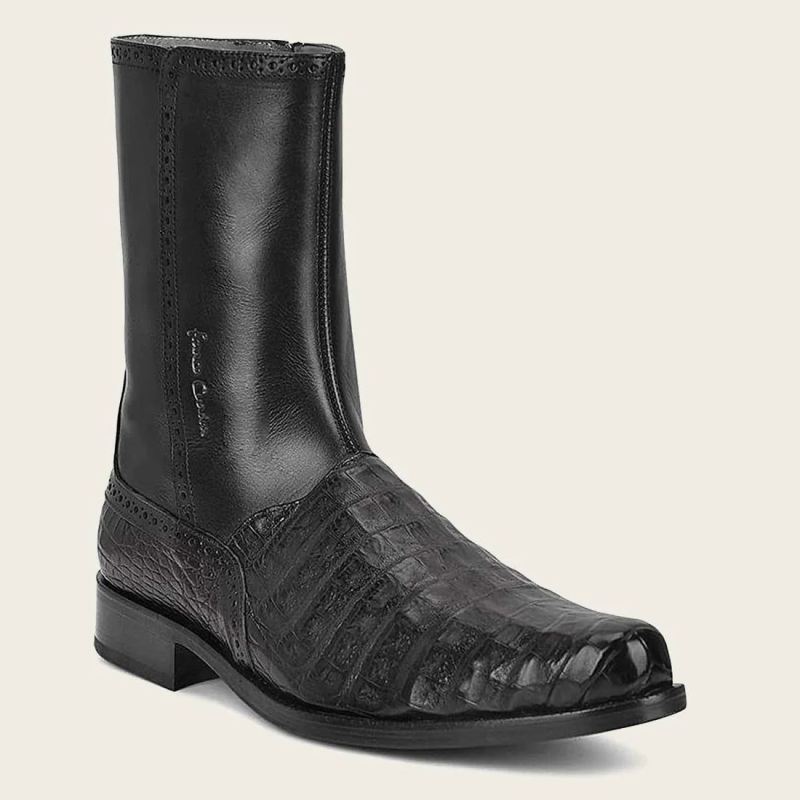 - Cuadra Men's Engraved Black Leather Boot With Metallic Monogram | New Arrivals