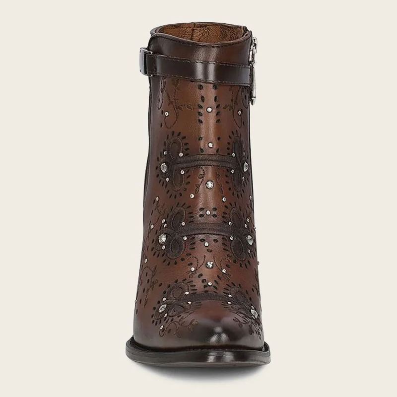 - Cuadra Women's Perforated Brown Leather Bootie With Austrian Crystals | New Arrivals