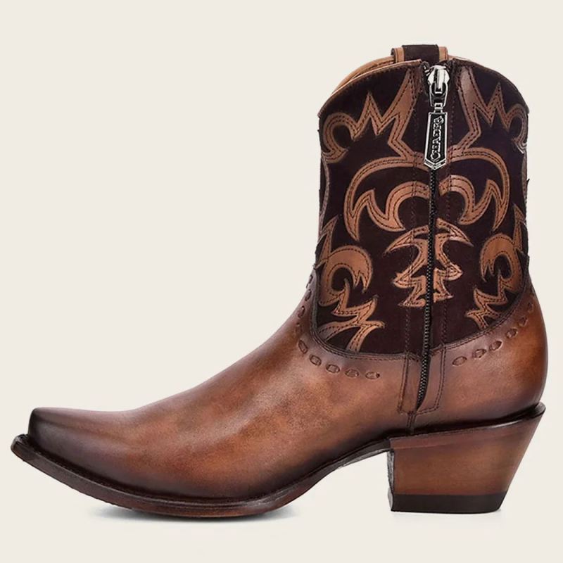 Indulge in the bold and beautiful aesthetic of our Brown Western leather bootie, and let them be the centerpiece of your outfit. These booties elevate your style for any occasion, whether it's a special event or your everyday look. Discover the artistry and sophistication of our Western Chic collection today.