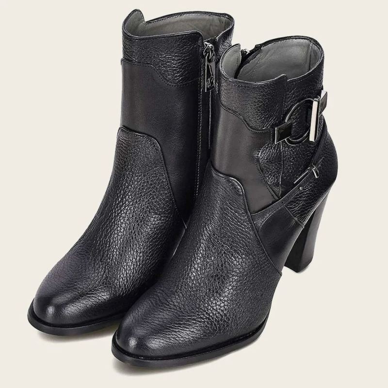 - Cuadra Women's Genuine Deer Black Leather Bootie | New Arrivals