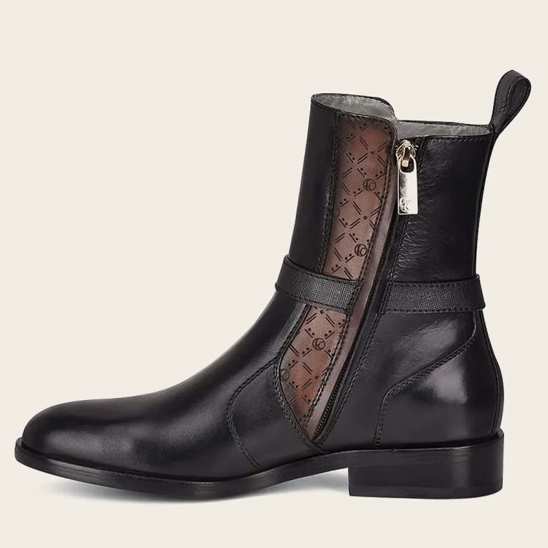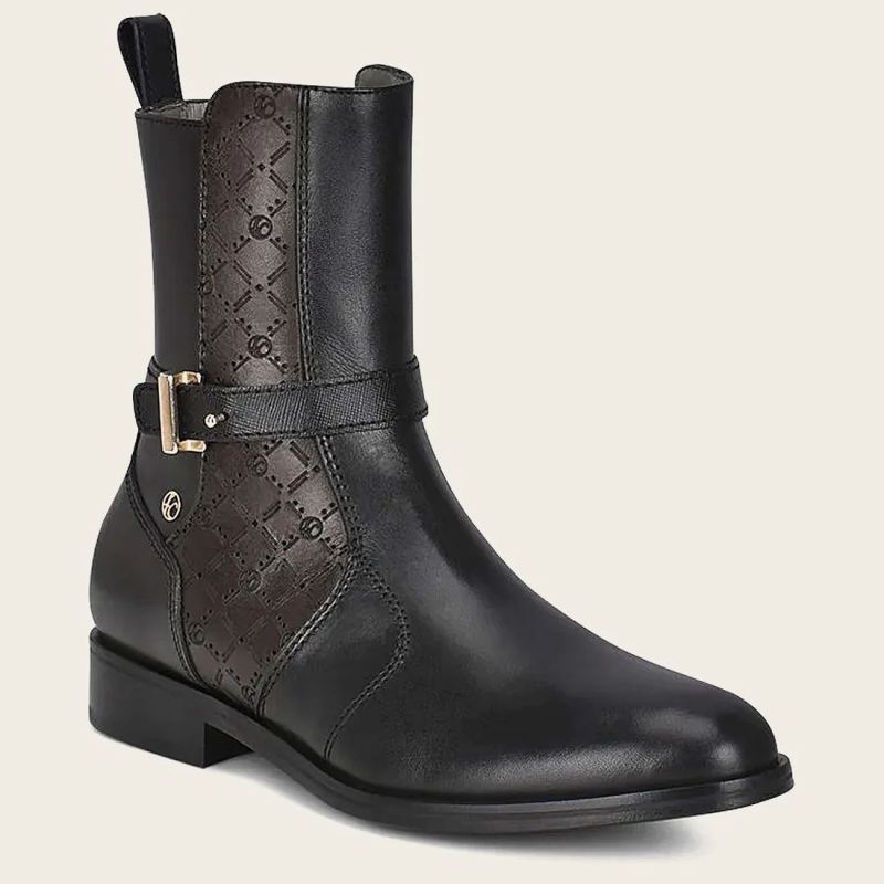 A subtle metallic application with the Franco Cuadra monogram adorns the boot, reflecting a sense of refined luxury.
