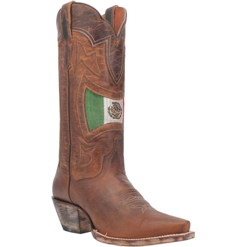Display your pride for Mexico with the Dan Post Corazon all-leather boot. It comes with Mexican flag detail on the shaft, a snip toe and medium cowboy heel, and the Ultimate Flex insole and leather outsole ensure you're comfortable no matter where these boots take you.