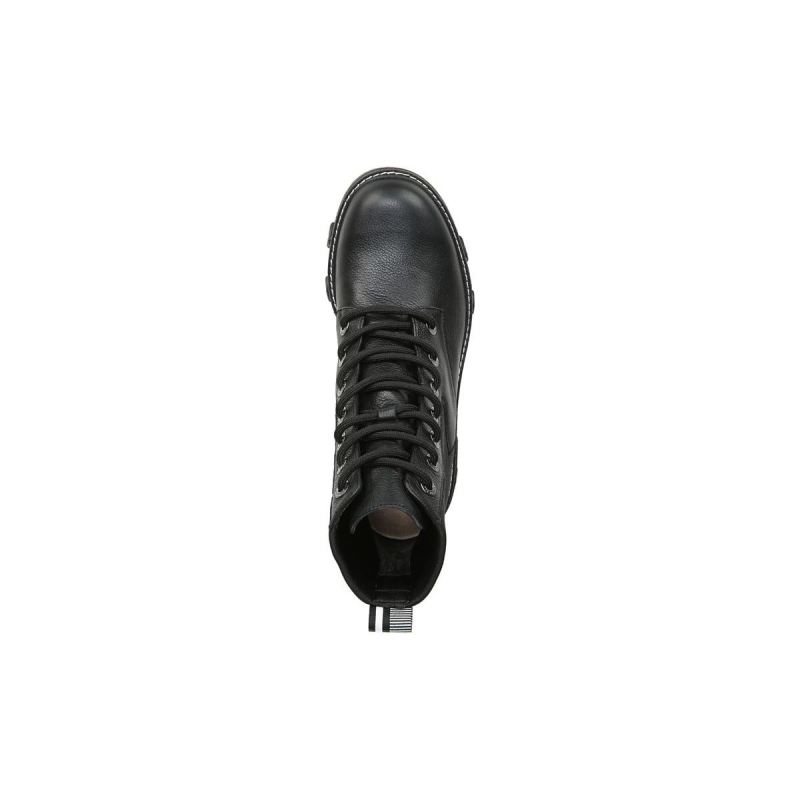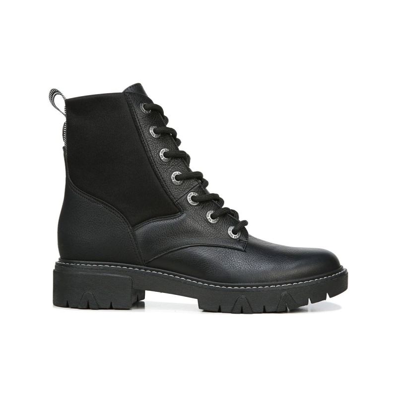 - STYLE: Edgy lace-up boot with luggy outsole, neoprene panels, striped pull tab, and 1 and 1/2 inch heel