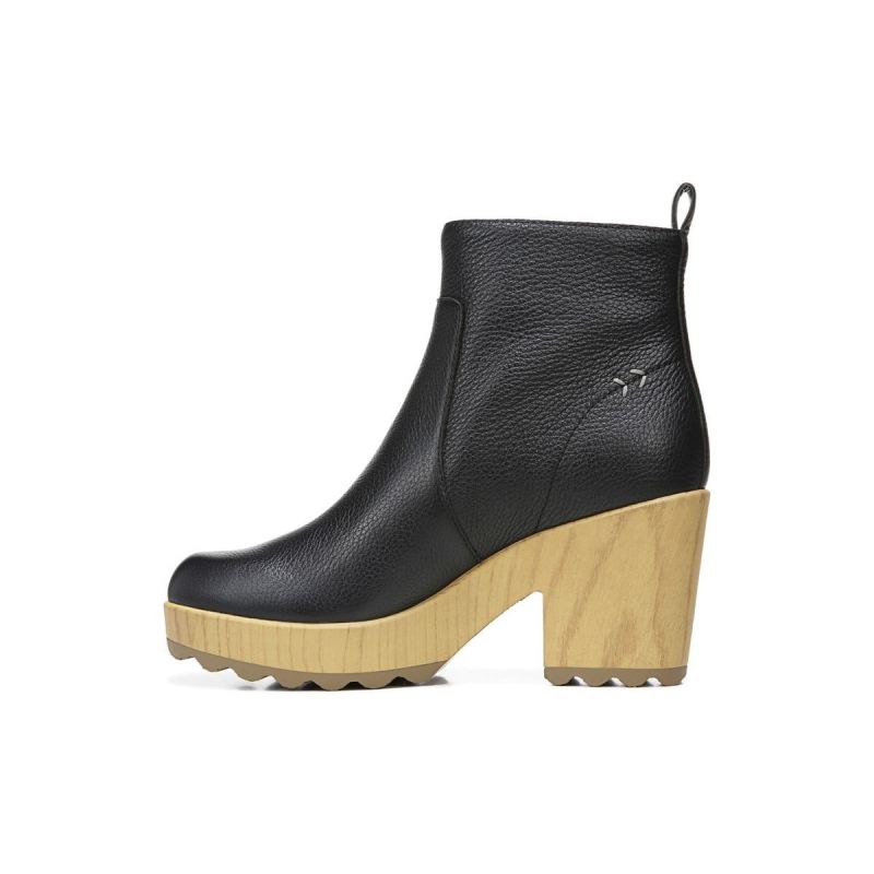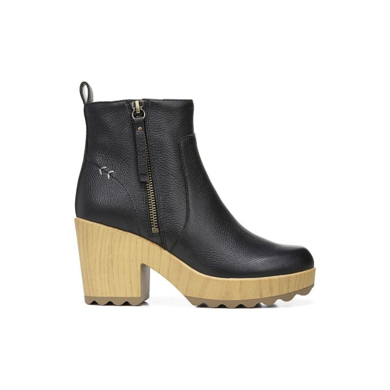 - STYLE: Ankle bootie on a faux wood 3 1/3 inch platform clog sole