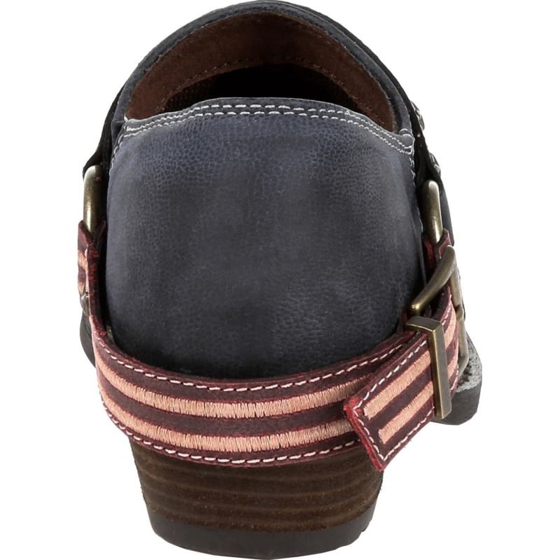 This style is full-grain leather with an accessory strap and antiqued silver hardware. It has a soft mesh lining, cushion flex insole and steel shank. There is a single row sole stitch around the snip toe, the outsole is rubber with a vintage finish and the heel is 1 ".