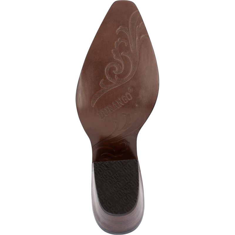 This style is full-grain leather that includes floral embroidery with antiqued metal hardware. Inside the boot is a soft mesh lining and the Durango Sole Comfort Footbed.