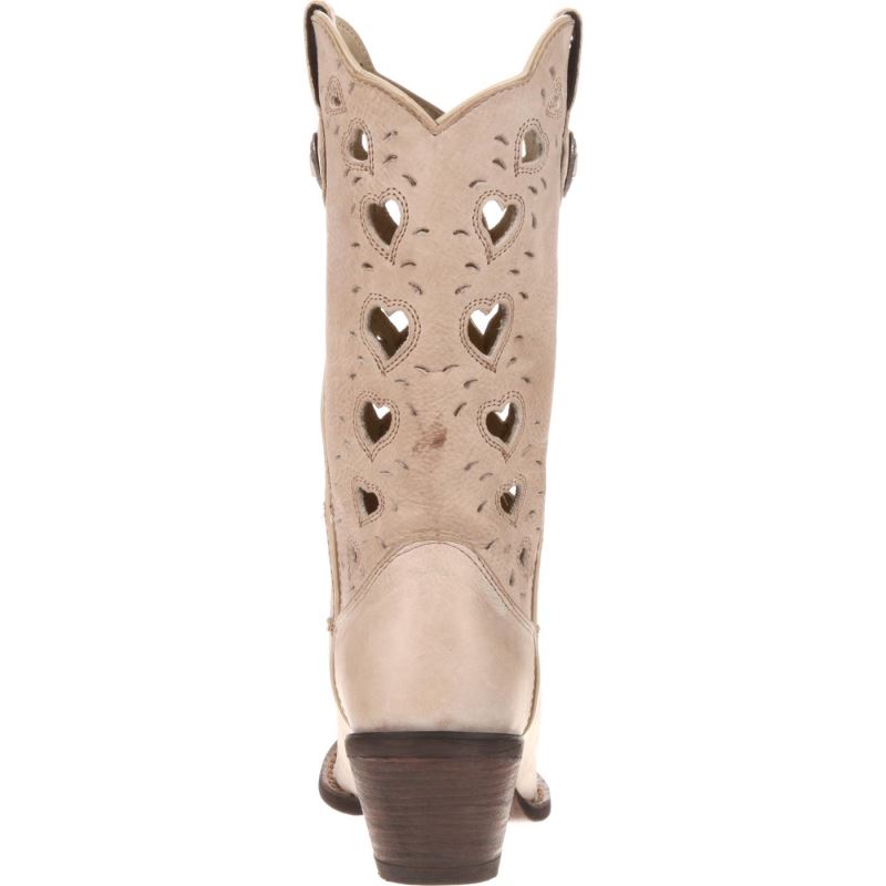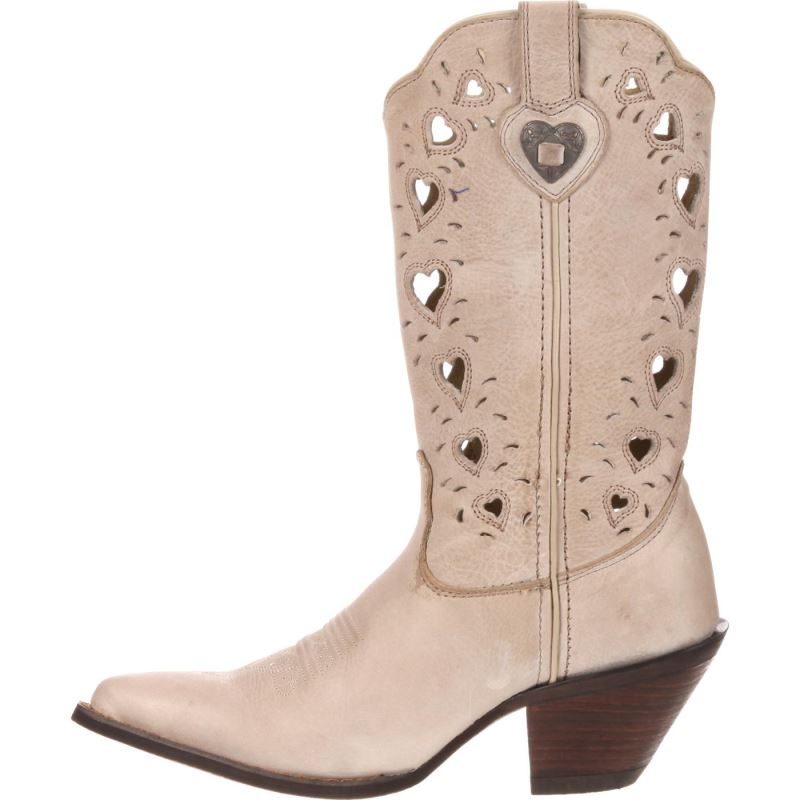 The light taupe color allows the full-grain leather to really stand out on this Crush by Durango Heartfelt Western, while the cutout heart shapes that adorn the shaft make this women's boot look downright fashionable. For that extra special touch, there are heart-shaped conchos beneath the leather pull tabs. The great thing about these pointed toe boots is that they look great with just about everything; from dresses to shorts, you will be amazed at how stylish these boots are.