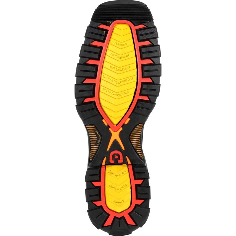 - Multi-Durometer Rubber Outsole with high abrasion rubber outer lugs for high-impact durability and softer durometer mid lugs for added flexibility and increased slip, oil and heat resistance