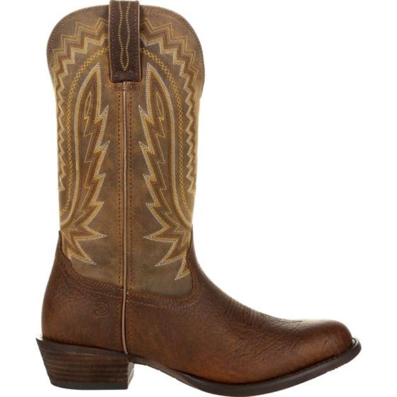 Ride off into the sunset in the comfortable and classic men's 13" Western Flaxen Brown Durango Rebel Frontier style. Get a pair today!