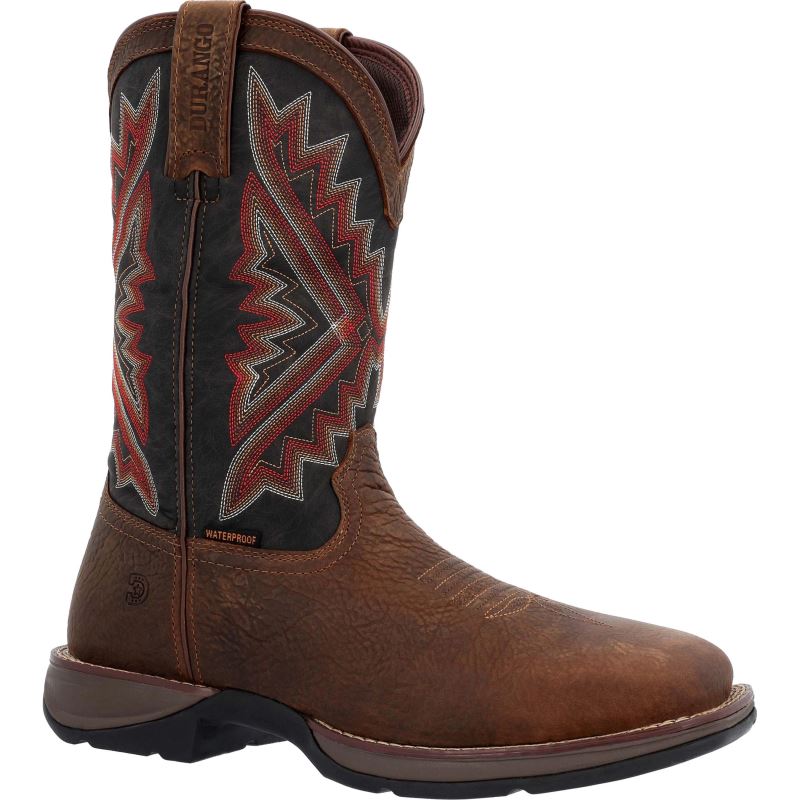 Stay comfortable and dry in this men's 12" Western Waterproof Steel Toe Pioneer Brown/Midnight Durango Rebel Work. Get a pair today!