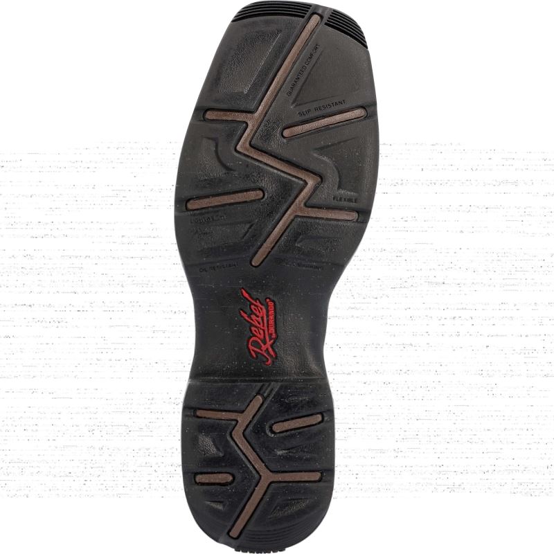 This is the men's 12" Western Waterproof Steel Toe Pioneer Brown/Midnight Durango Rebel Work.