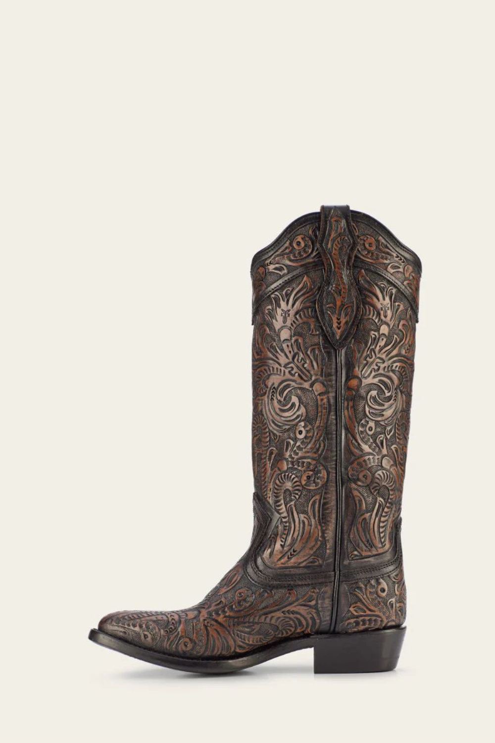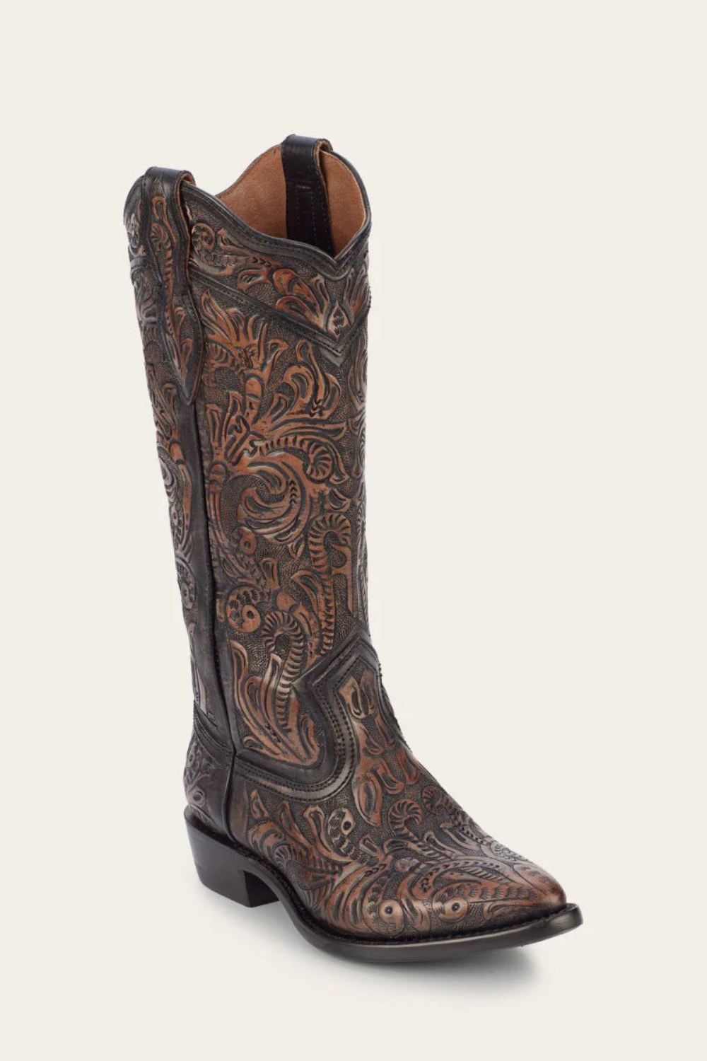 The relentless style of the Billy Daisy Pull-On Boot is the personification of craftsmanship. Designed with durable hand tooled leather that makes each pair one-of-a-kind, the boot features a modern Western silhouette with pointed toe and pull tabs at the top. A soft leather lining ensures a comfortable fit.