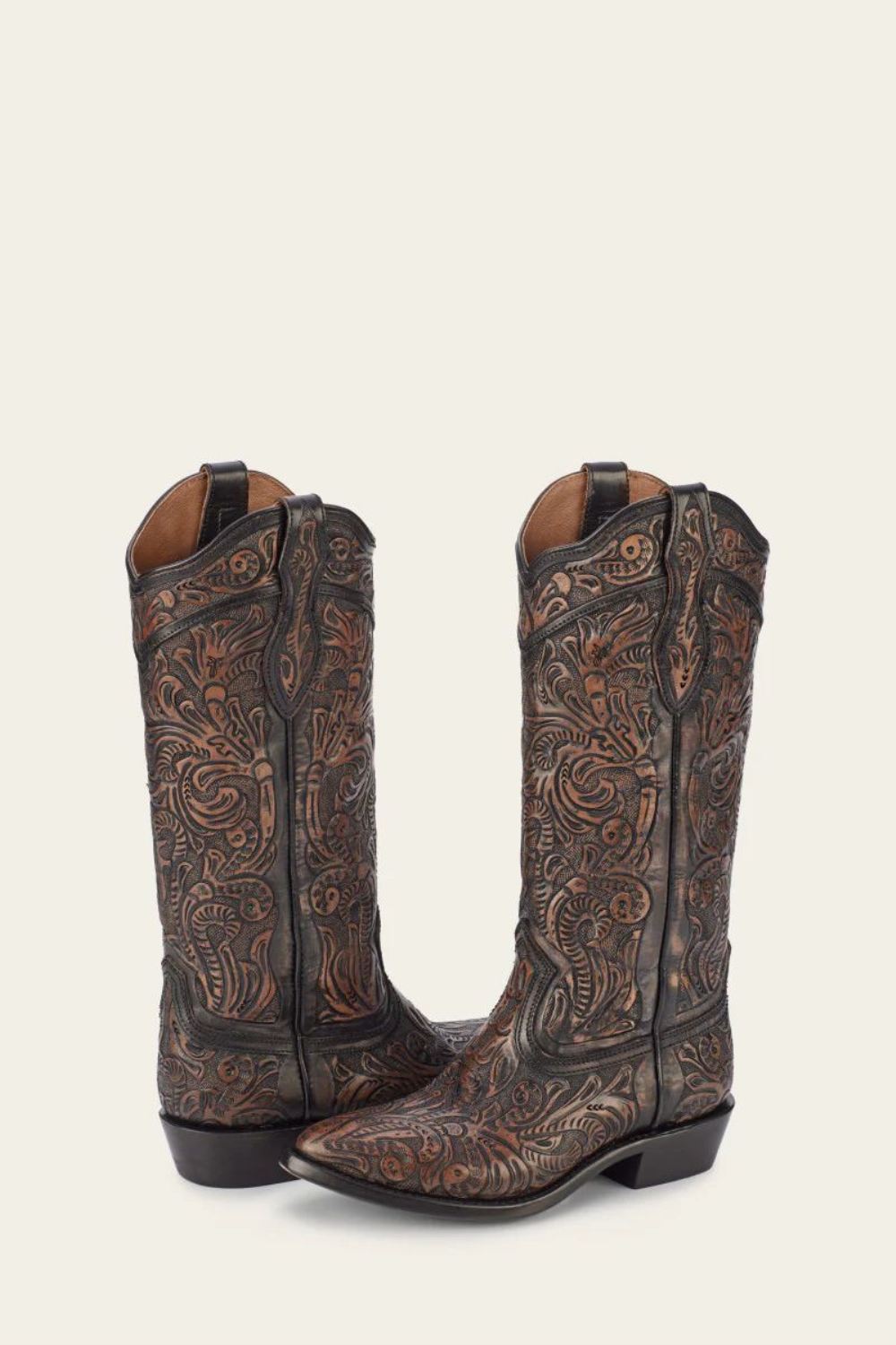 Western style silhouette with pointed toe.