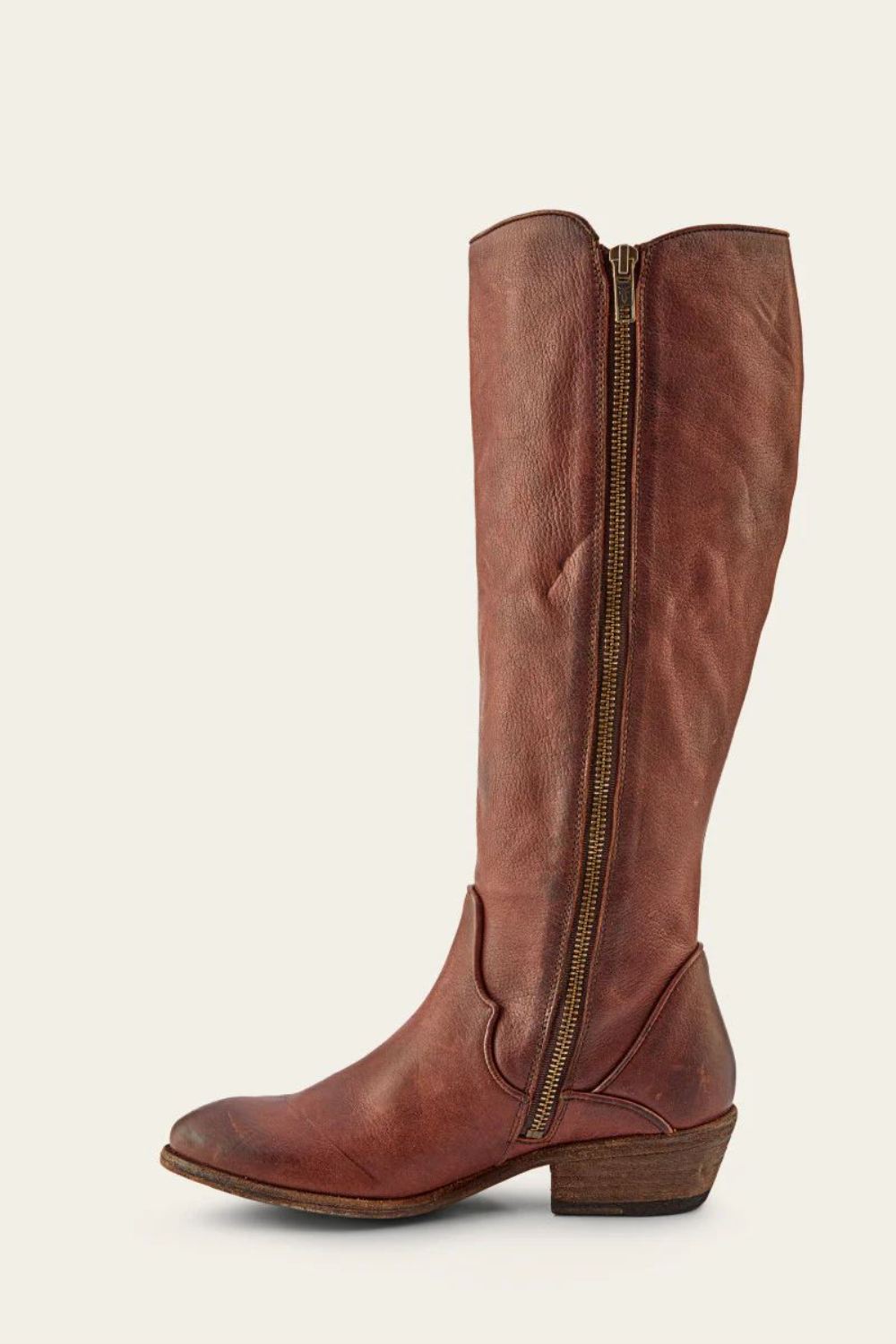 - FRYE | WOMEN'S MELISSA INSIDE ZIP TALL-Mahogany