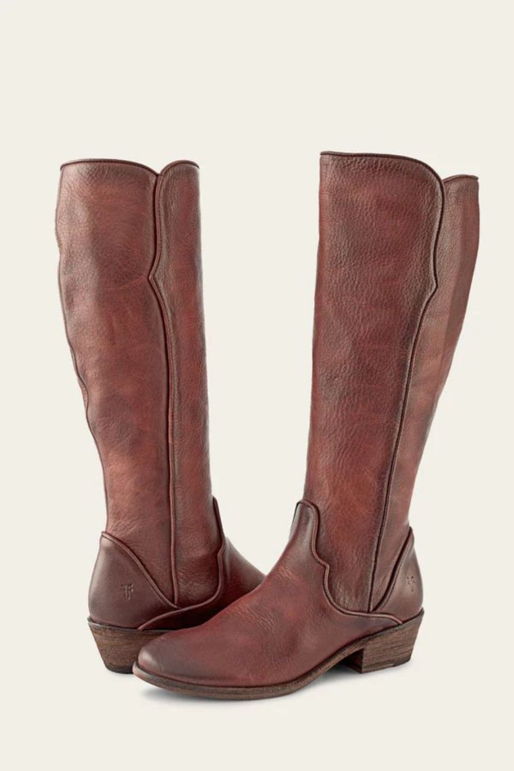 - FRYE | WOMEN'S CARSON PIPING TALL WIDE CALF-Redwood