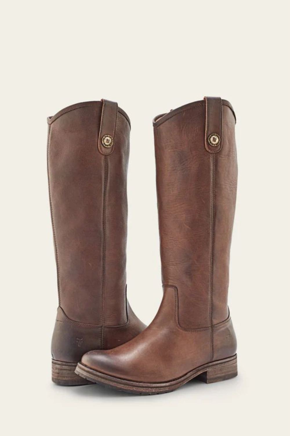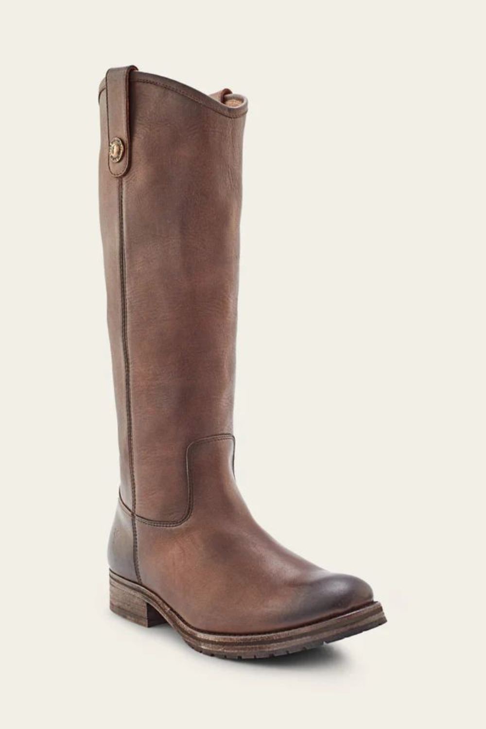 Built on one of Frye's fan favorites, The Melissa Double Sole Button Lug Tall is the perfect update to your Melissa Collection. A classic riding boot gets a modern update on a stacked heel with a mini-lug outsole. Ruggedly classic.