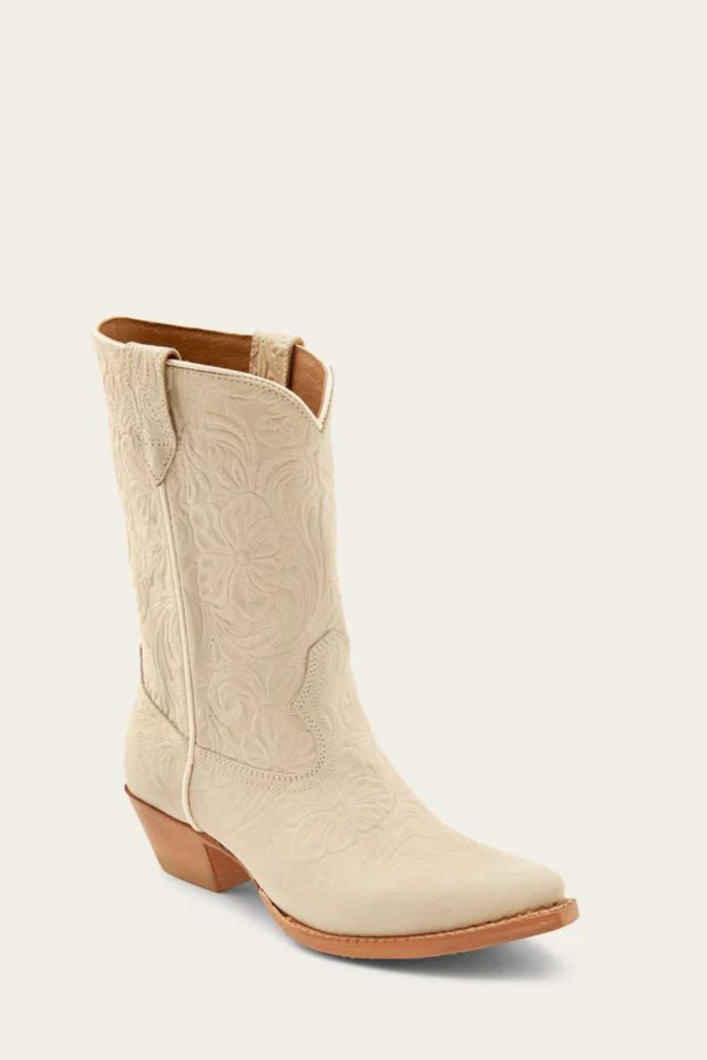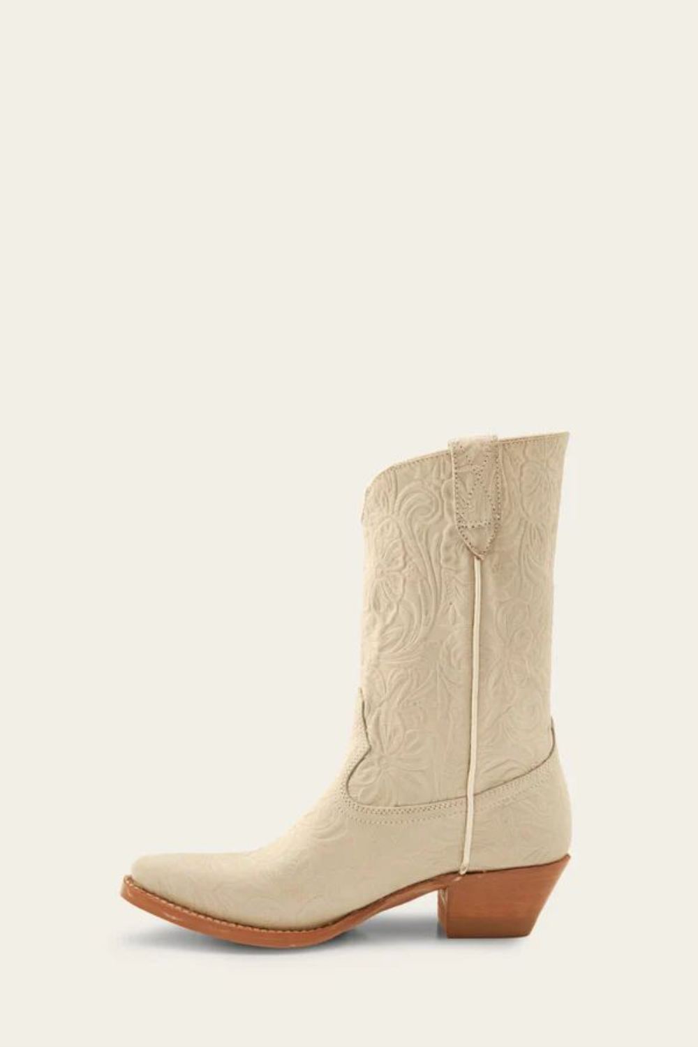 Crafted with a sleek pointed toe and a pitched heel, the Sacha Mid Pull-On offers fashion forward styling with an iconic western silhouette. Complete with pull-on straps and a luxe leather lining for comfort and ease. Each pair features a hand tooled leather upper and is one-of-kind.