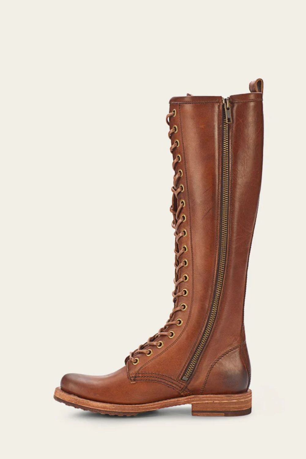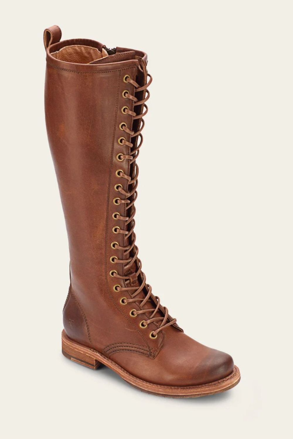 A style that's sure to stand out, The Veronica Combat Tall is crafted from the same luxe leathers as your favorite Frye Combat Boot, The Veronica. This style rests on a durable Goodyear welted silhouette, features an inside zipper for easy wear and is marked by a soft, perfect fit.