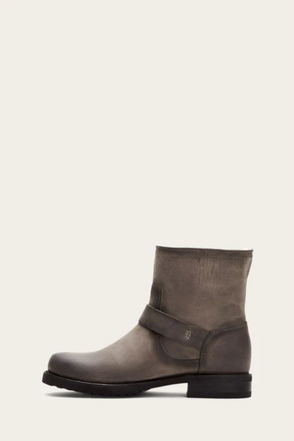 Made from gorgeous leather and lined with genuine shearling for warmth, this bootie is your answer to Fall and Winter weather. Detailed with classic, moto buckle hardware and set on a rubber traction outsole, this pattern is sure to become a Frye favorite.