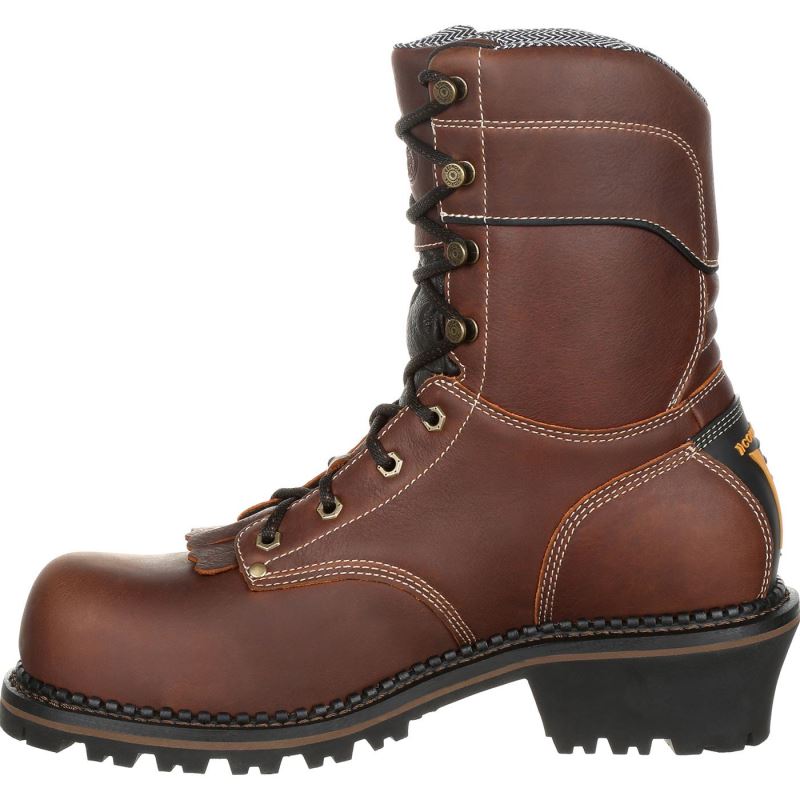 Georgia Boot is no stranger to logger work boots. Over the decades we've combined comfort with rugged durability and performance to give you the best loggers for the job. Constructed with full-grain SPR leather, this composite toe AMP LT logger features grip panels for easy pull on and milled brass hardware that extends the life of your laces. The Counter Lock System on the rear of the boot acts as a heel stabilizer and a kick off for easy boot removal at the end of a long work day or night. Easily remove the brush guard kiltie if you prefer the look of a standard work boot.