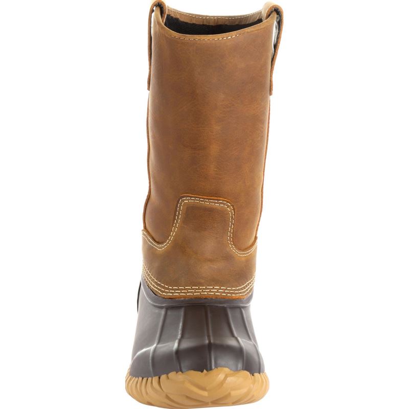 The Georgia Boot Marshland alloy toe pull-on duck boot will give you the confidence to take on water, muck and barnyard mayhem. The upper is constructed from premium SPR leather and features leather pull loops and a cooling fiber infused lining. The polyurethane and cushioning memory foam AMP LT insole is removable and provides your feet with all day comfort.