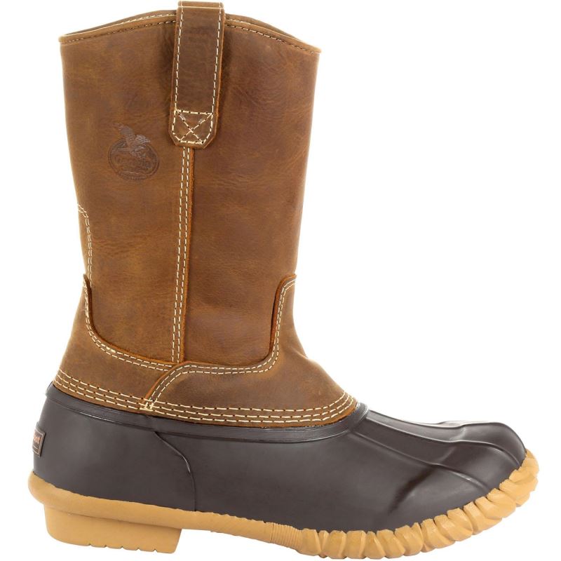Feel confident to trudge through the mud in the Georgia Boot Marshland pull-on duck boot. A barnyard proof SPR leather upper and waterproof rubber shell with a cooling fiber infused lining will protect your feet from mud, cow pies and any other barnyard wastes you may come across.