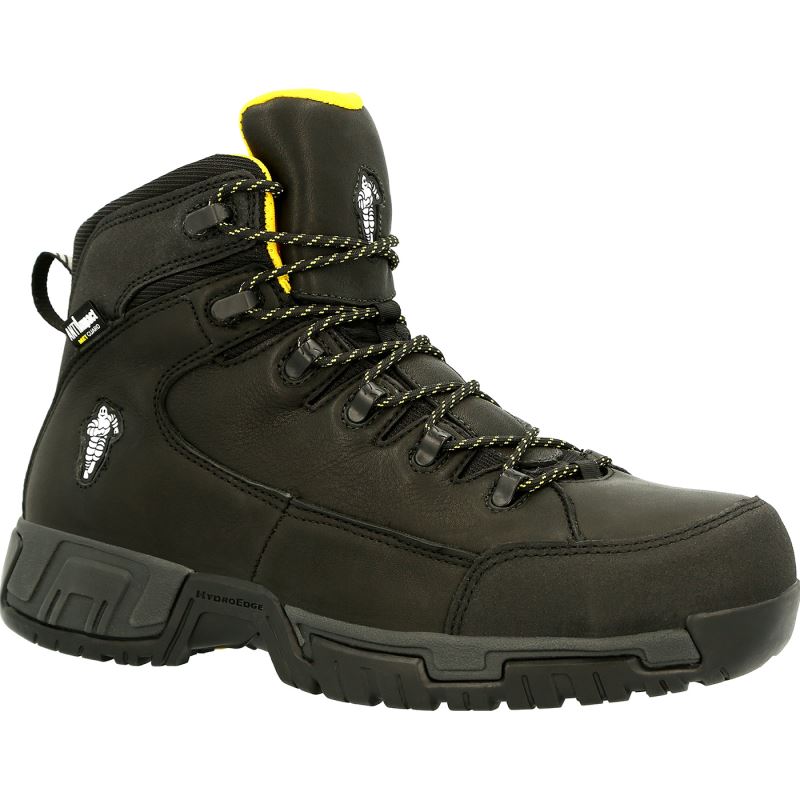 The MICHELIN HydroEdge internal metatarsal waterproof hiker is designed with the innovative technology and heavy-duty performance the MICHELIN brand is known for. The upper is made of full-grain leather and features a lightweight alloy toe cap and a soft ANTI-Impact FLX metatarsal guard. Upon impact the met guard provides a shielding barrier to reduce impact, protecting the foot while still supporting movement. This metatarsal work boot meets ASTM F2413 protective toe and metatarsal guard classifications for safety footwear.