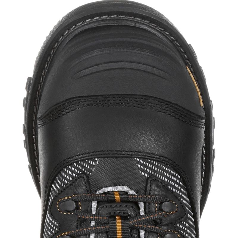The Georgia Boot Rumbler composite toe waterproof hiker work boot includes all the same great features of the Rumbler collection with a hiker style. The upper features a combination of leather and TPU infused nylon giving it great abrasion resistance. Dual functioning hardware allows you the option of using as a hook or eyelet. This hiker boot also features an external TPU toe cap for added abrasion resistance and durability and a padded tongue and collar for extra comfort. The removable leather Comfort Cover prevents pinch points while providing protection.