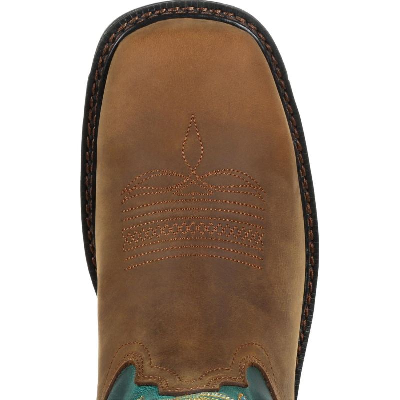 The interior on this women's western work boot is lined with a soft moisture wicking material. The breathable Georgia Waterproof System is designed to let air in while keeping water and muck out in wet conditions. The cushioning Quick Response removable insole compresses with each step, quickly bouncing back to its original form.