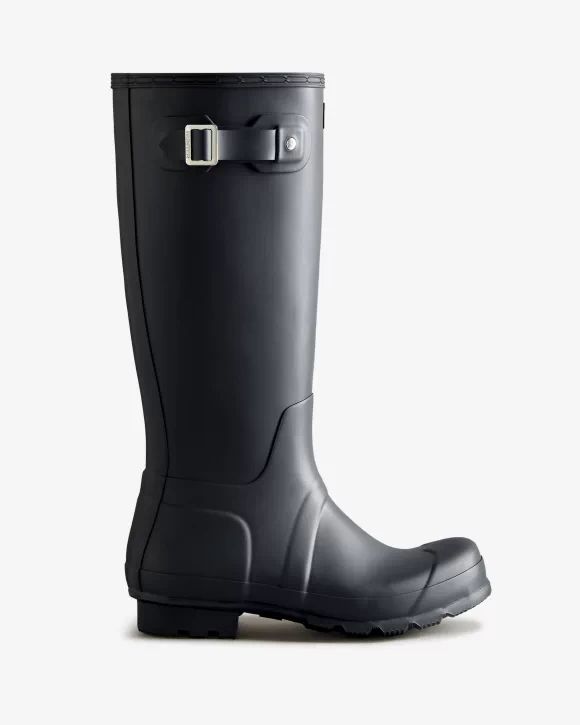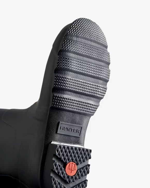 Designed to shield and protect from the elements, the Original Tall Rain Boot Boot has been at the heart of the Hunter Original brand since its introduction in 1956. Formed of natural rubber, each pair is made from 28 hand-cut parts and assembled over three days on an aluminium last bespoke to Hunter, before being vulcanized for superior protection. Featuring the Hunter Original tread pattern, and a comfortable polyester lining, this men's waterproof boot with a classic black matte finish is a wet weather necessity.