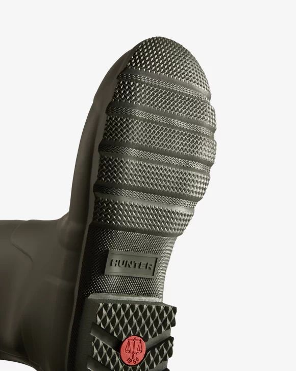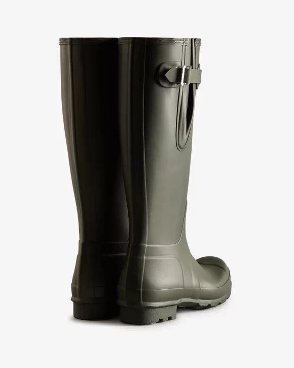 Designed for a flexible fit the Original Tall Side Adjustable Boot mirrors the iconic Original Tall with the addition of an expandable gusset at the side. Perfect for a wider calf, these dark green matte rain boots offer ease of movement and adjust from the traditional tailored Hunter fit to a more relaxed shape when the gusset is fully extended. Handcrafted from natural rubber, the Original Adjustable boot is fully waterproof with a comfortable polyester lining and the signature Hunter Original tread.