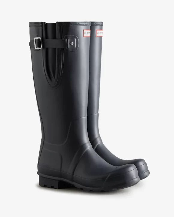 Designed for a flexible fit the Original Tall Side Adjustable Boot mirrors the iconic Original Tall with the addition of an expandable gusset at the side. Perfect for a wider calf, these dark green matte rain boots offer ease of movement and adjust from the traditional tailored Hunter fit to a more relaxed shape when the gusset is fully extended. Handcrafted from natural rubber, the Original Adjustable boot is fully waterproof with a comfortable polyester lining and the signature Hunter Original tread.