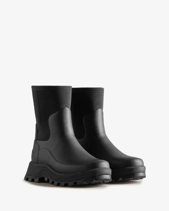 The City Explorer is the ultimate boot for city streets. Built on a new chunky rubber outsole with an exaggerated heel and traction-enhancing rubber, it features a neoprene upper and recycled lining made from post-consumer waste. Bold tonal Hunter logos on the webbing finish the look.