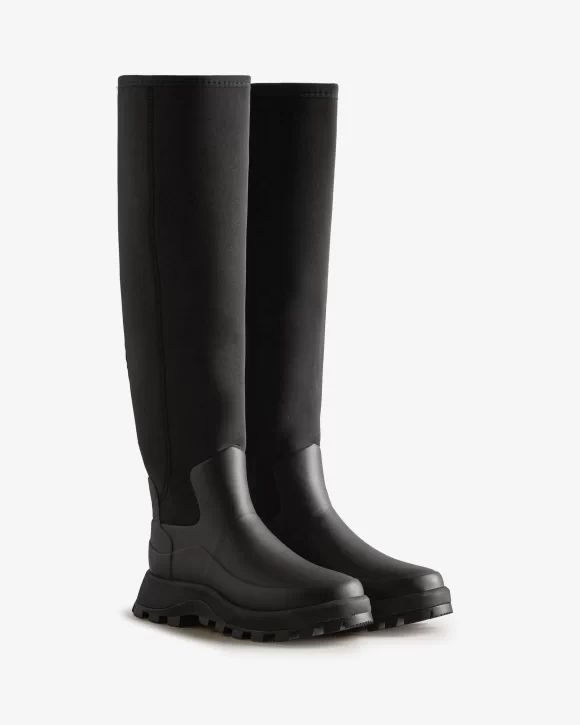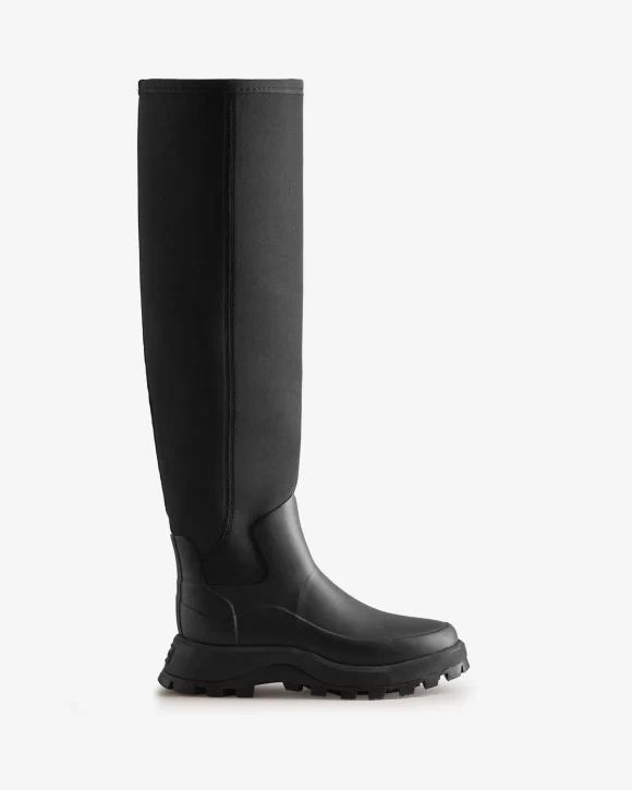 The City Explorer is the ultimate tall boot for city travel. Built on a new chunky rubber outsole with an exaggerated heel and traction-enhancing rubber, it features a neoprene upper and recycled lining made from post-consumer waste. A bold height and tonal Hunter logos on the webbing finish the look.