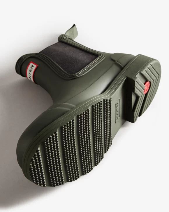 Crafted from natural FSC-certified, vegan rubber, the 100% waterproof Commando Chelsea is a new addition to our iconic Original collection. Retaining all the beloved features of the Original Chelsea Boot, like the flexible gusset and Hunter grip, this new silhouette has a higher profile, reaching 15mm (0.59") further up the leg. This green women's commando Chelsea hybrid style also features an updated recycled polyester lining and insole.