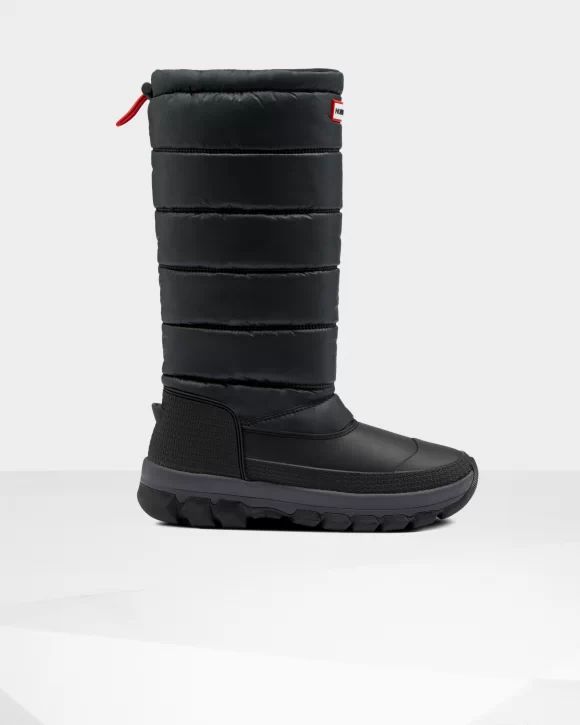 Take on new icy habitats with the Original Tall Snow Boot. Offering maximum protection and warmth to the most daring explorers in even the most challenging terrains. Handcrafted with a fleece lining, PU quilted nylon upper, hydroguard waterproof membrane and an innovative Ortholite footbed, tread through frosty excursions with the comfort and support you can rely on. With the ability to be worn in temperatures as low as -7, your feet and legs will feel toasty with the drawstring topline that naturally retains warmth. Specifically developed for maximum grip on wet surfaces, this 100% waterproof boot features a durable sole offering greater traction and increased mobility for frosty explorations. Fashioned in a classic black colorway with red accents, head out and stride through snow in warmth and style.