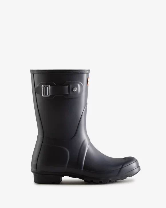 Perfect for wet weather conditions this women's Rain Boot is a shorter version of the iconic Hunter Original Tall Boot. Formed of natural rubber, each boot is handcrafted and assembled over three days before being vulcanised for superior protection. Featuring the Hunter Original tread pattern, and an updated 100% recycled polyester lining and insole, this matte pink waterproof boot is a rainy-day necessity.