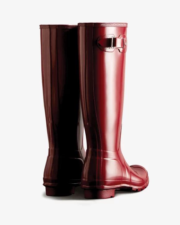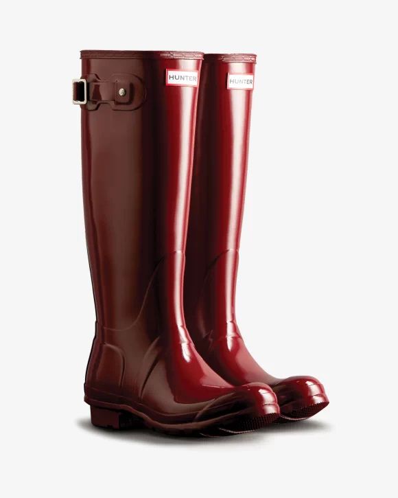 Perfect for wet weather conditions, this women's Rain Boot has been at the heart of the Hunter Original brand since its introduction in 1956. Formed of natural rubber and a updated 100% recycled polyester lining and insole, each pair is made from 28 hand-cut parts and assembled over three days on an aluminium last bespoke to Hunter, before being vulcanized for superior protection. Finished in a seasonal red shade and featuring the Hunter Original tread pattern, this glossy red waterproof boot is a rainy-day necessity.