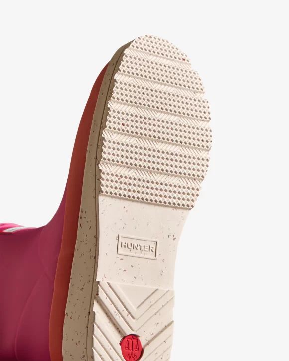 The iconic design of our Original boot inspired our more minimalist PLAY boot, which has a flat platform sole for maximum comfort. Crafted from the highest quality natural rubber, this women's rain boot is completely waterproof and has been updated with a 100% recycled polyester lining and insole. Just grazing the top of the ankle, this contrast green boot is fashioned with contrast lines and a unique speckled sole.