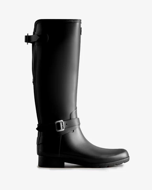 With a slimmer fit ideal for city-living, the Refined Tall Rain Boot features a tailored shape, and is constructed from fewer rubber layers for a more lightweight feel. Handcrafted and fully waterproof, this Refined Tall boot features an adjustable buckle with gusset and decorative strap around the ankle, fusing fashion with function. With a classic matte black finish, these sleek women's boots make a footwear statement.