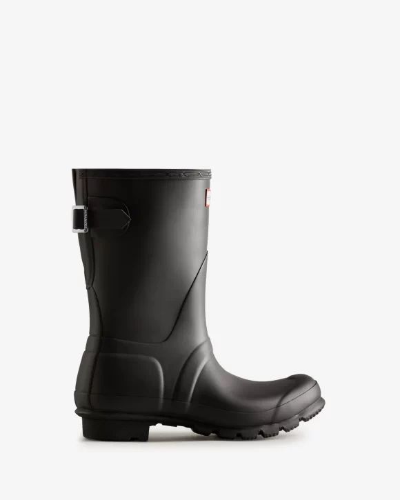 Designed for a flexible fit, the Original Short Adjustable Boot mirrors the iconic Original Tall with the addition of an expandable gusset at the back and a shorter leg height. Perfect for a wider calf, these matte boots in classic black offer ease of movement and adjust from the traditional tailored Hunter fit to a more relaxed shape when the gusset is fully extended. Handcrafted from natural rubber, this Original adjustable short boot is fully waterproof with a comfortable polyester lining and the signature Hunter Original tread.