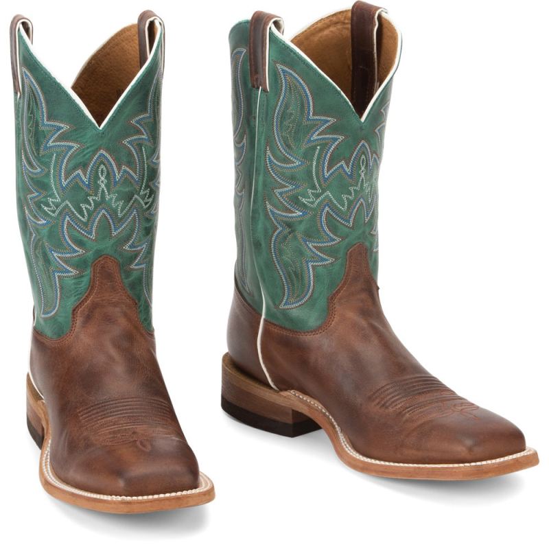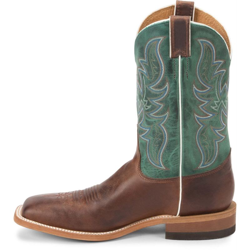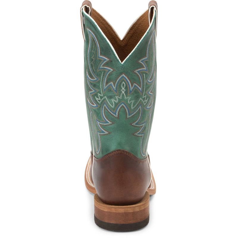 It has an 11" tall, turquoise top paired with a broad square toe, block heel, leather outsole and our J-Flex Flexible Comfort System" insoles.