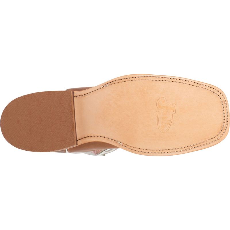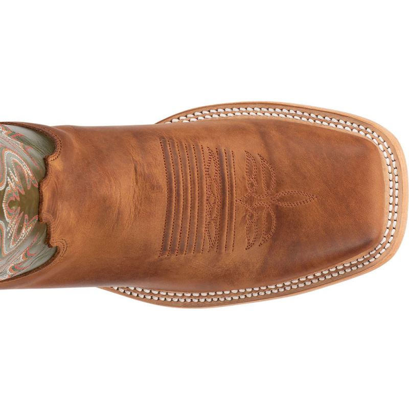 Featuring a fresh green leather upper embellished with a rustic-themed stitch pattern and a rugged brown leather foot, this boot is an original. The square toe and low heel provide a relaxed fit and the J-Flex Flexible Comfort System" insoles give the support and comfort you need whether you're in the saddle or working the dirt.