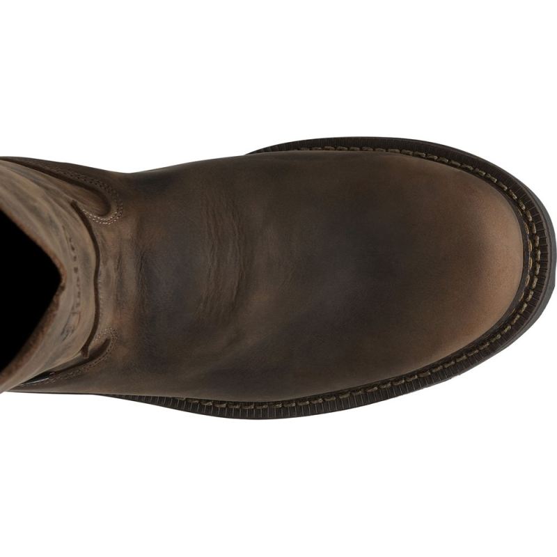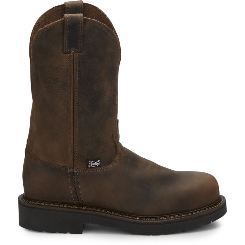 The Balusters Bay Gaucho Steel Toe, 11" tall J-Max" men's pull-on work boot features a rich brown leather exterior crafted for durability.