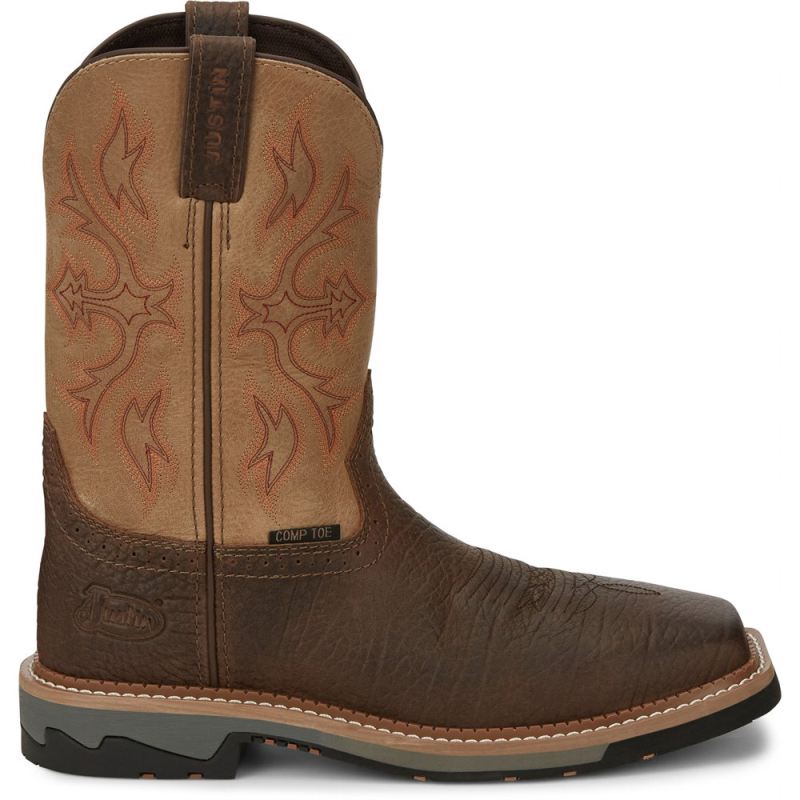 Featuring a composite safety toe for protection and our Stampede oil- and slip-resisting rubber outsole for excellent durability and traction, it's also equipped with our J-Flex Comfort System" with Removable Insert for cushioned comfort. This boot is Electrical Hazard Rated.
